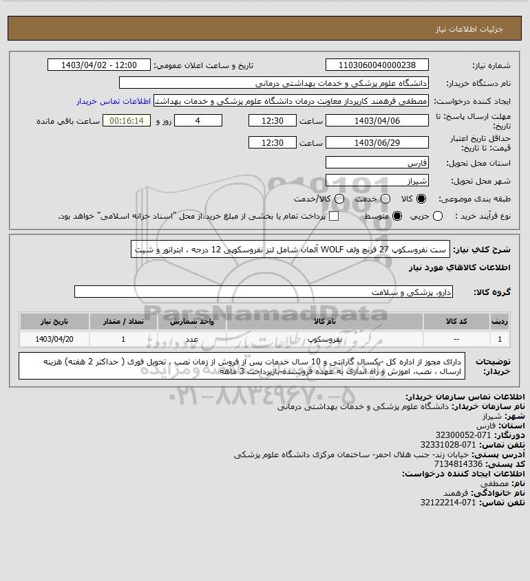 نام دستگاه خریدار:دانشگاه علوم پزشکی و خدمات بهداشتی درمانی