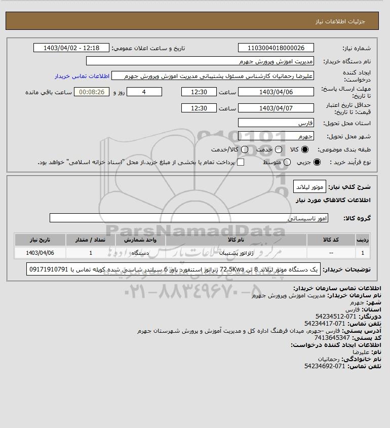 نام سازمان خریدار: مدیریت اموزش وپرورش جهرم