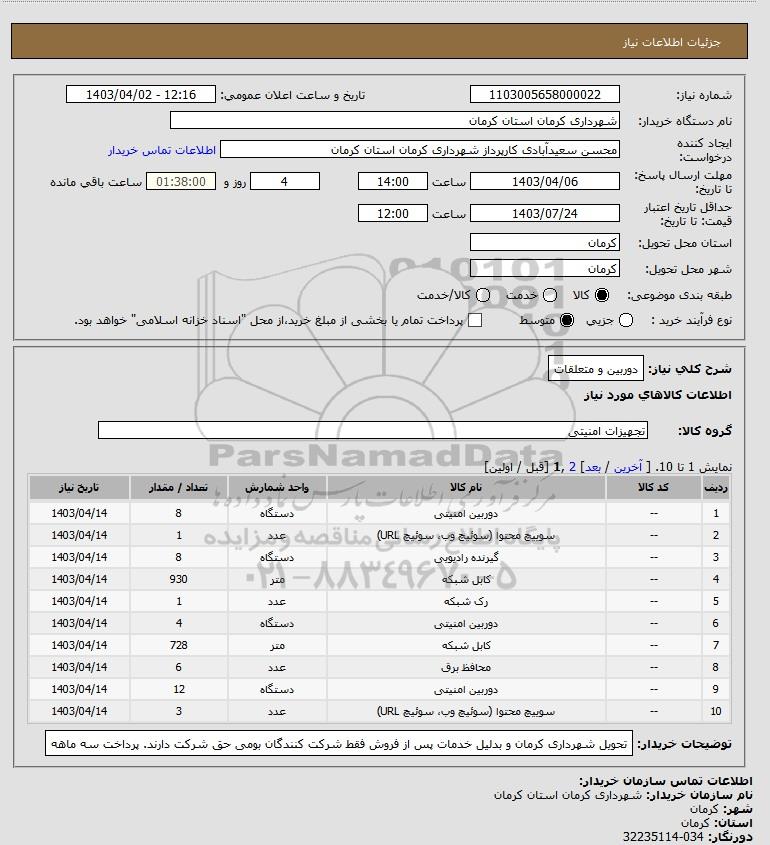 نام سازمان خریدار: شهرداری کرمان استان کرمان