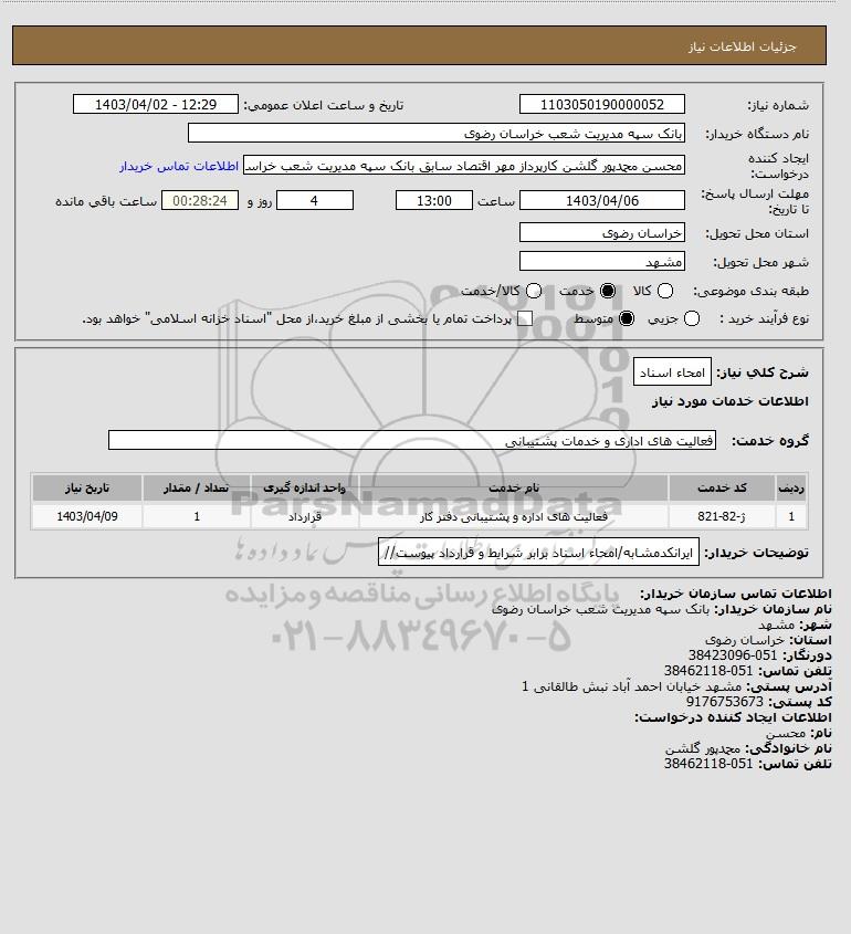 نام دستگاه خریدار:بانک سپه مدیریت شعب خراسان رضوی