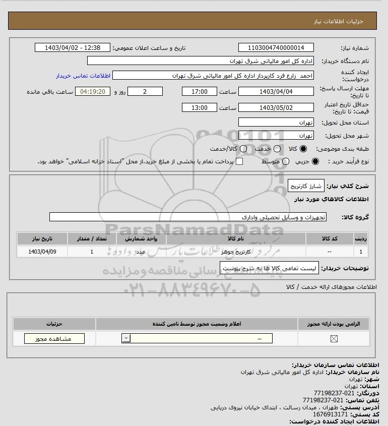 نام دستگاه خریدار:اداره کل امور مالیاتی شرق تهران