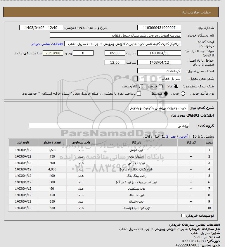 نام سازمان خریدار: مدیریت اموزش وپرورش شهرستان سرپل ذهاب