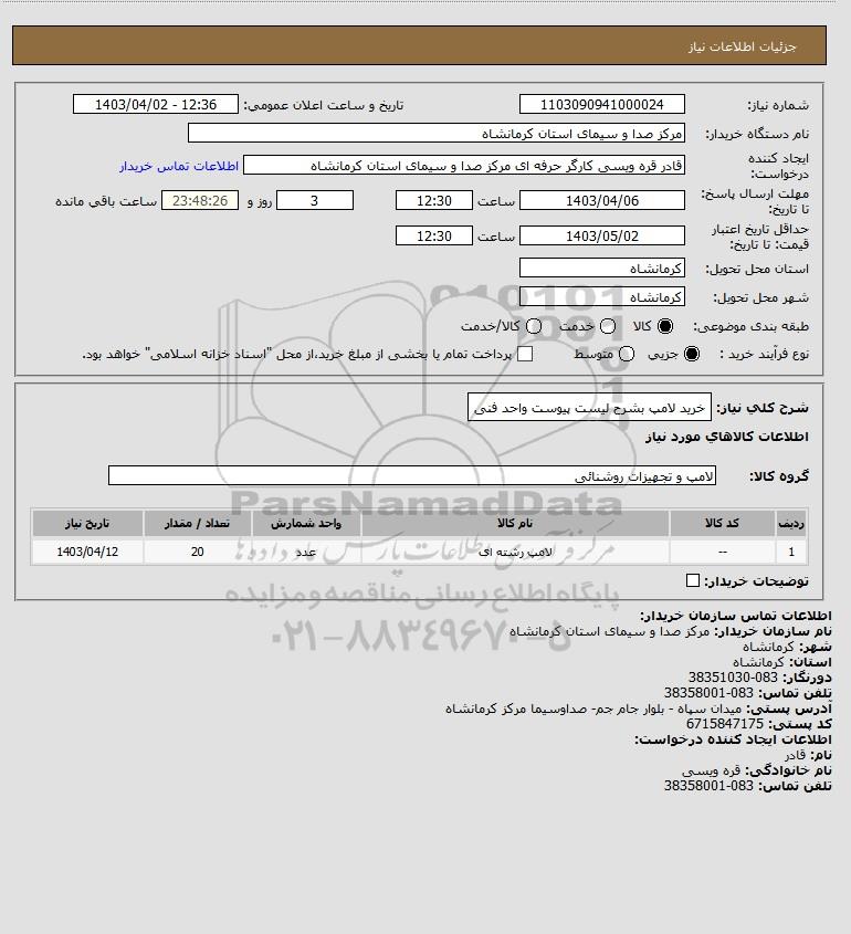 استعلام خرید لامپ بشرح لیست پیوست واحد فنی, استعلام خرید لامپ بشرح لیست پیوست واحد فنی