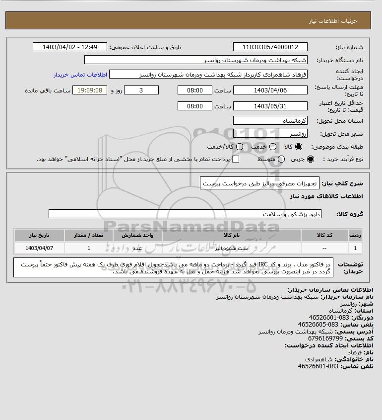 نام دستگاه خریدار:شبکه بهداشت ودرمان شهرستان روانسر