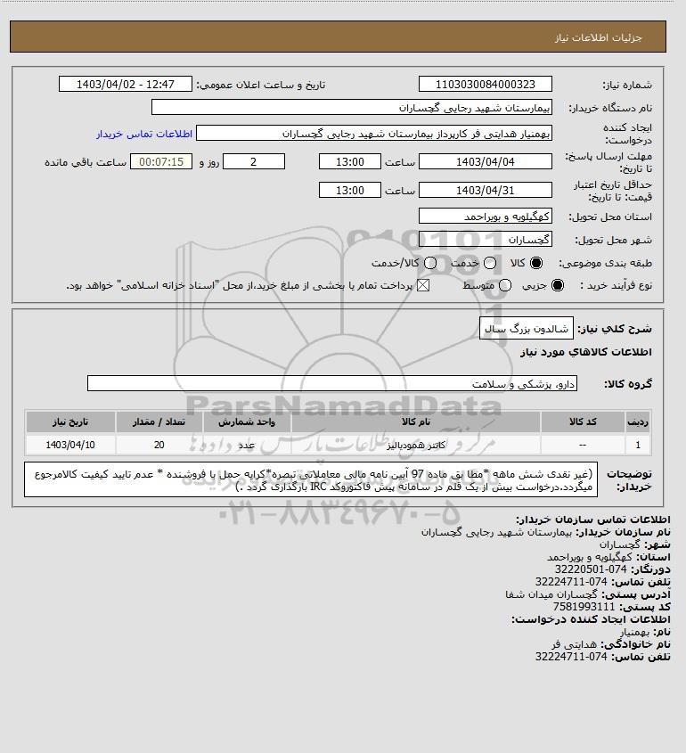 نام سازمان خریدار: بیمارستان شهید رجایی گچساران