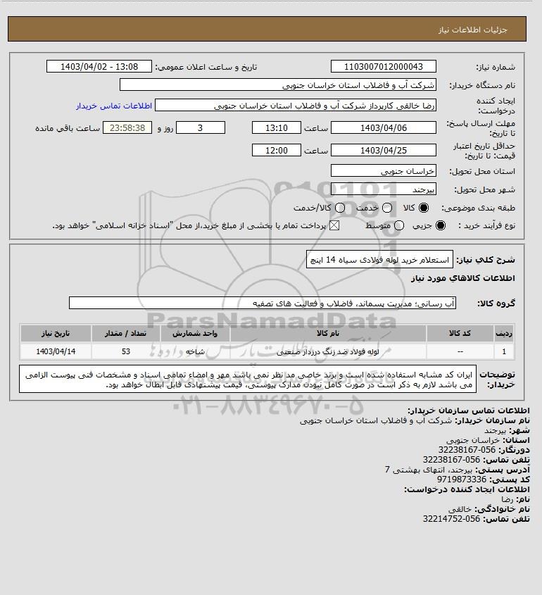 نام دستگاه خریدار:شرکت آب و فاضلاب استان خراسان جنوبی