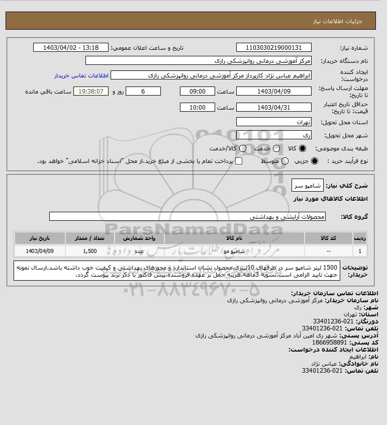 | 1 | -- | شامپو مو | عدد | 1,500 | 1403/04/09 |