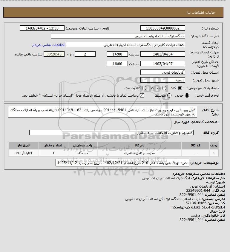 نام دستگاه خریدار:دادگستری استان اذربایجان غربی