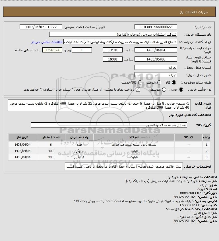 | 2 | -- | نایلون | کیلوگرم | 400 | 1403/04/04 |