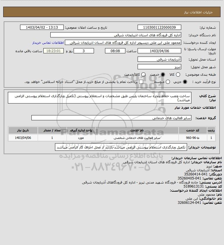نام دستگاه خریدار:اداره کل فرودگاه های استان اذربایجان شرقی