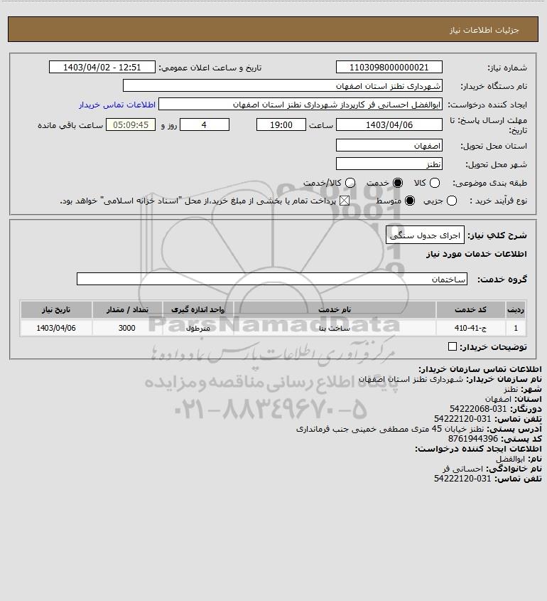 شرح کلی نیاز: اجرای جدول سنگی