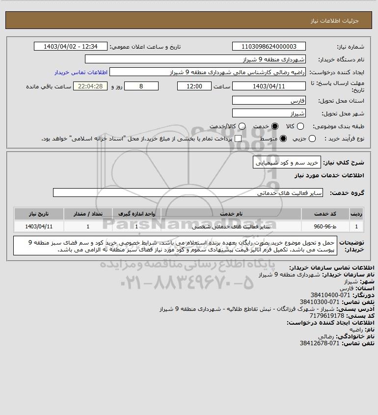 نام دستگاه خریدار:شهرداری منطقه 9 شیراز