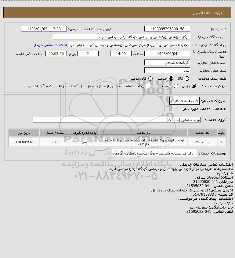 نام دستگاه خریدار:مرکز آموزشی پژوهشی و درمانی کودکان زهرا مردانی آذری