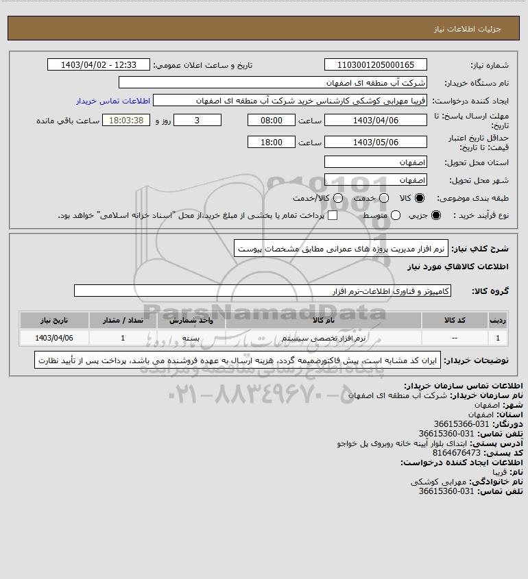 نام سازمان خریدار: شرکت آب منطقه ای اصفهان