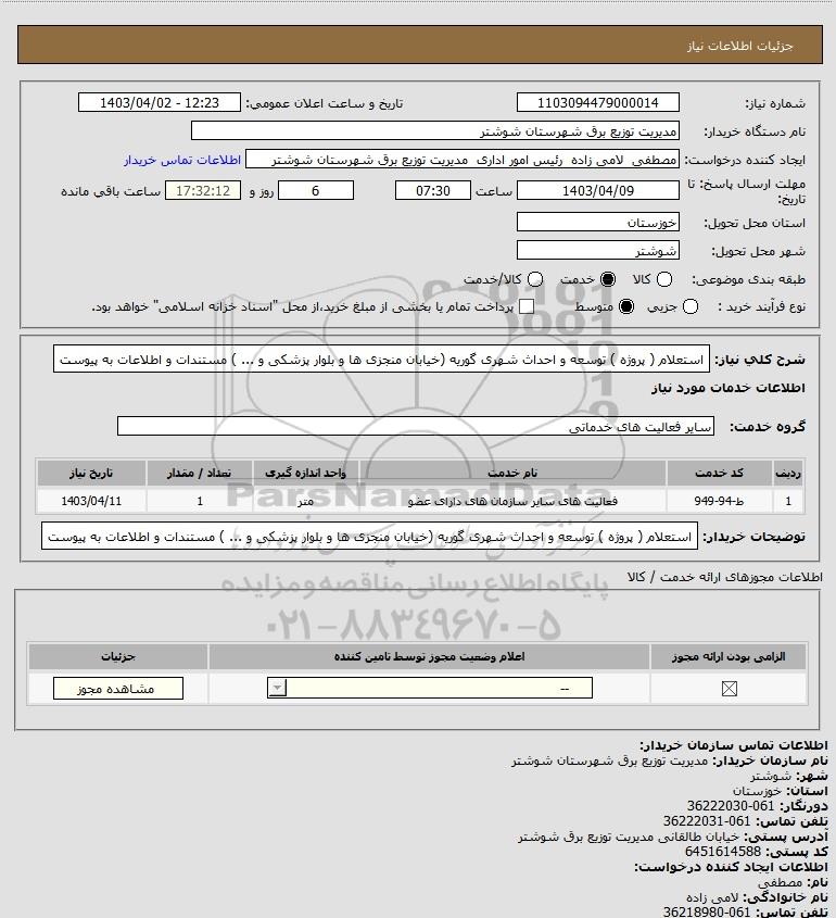 نام دستگاه خریدار:مدیریت توزیع برق شهرستان شوشتر