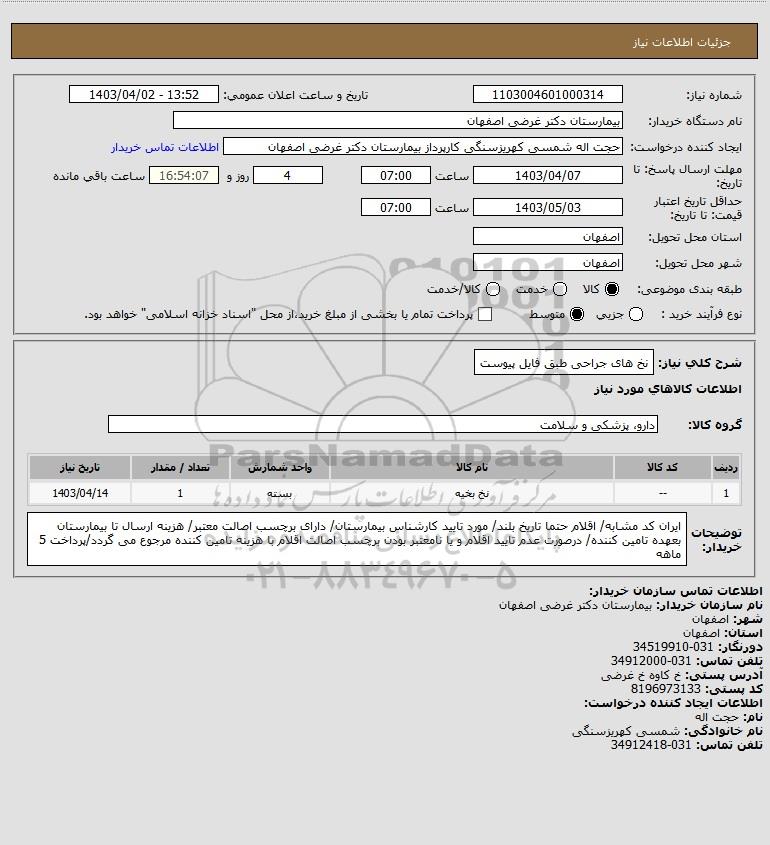 شرح کلی نیاز: نخ های جراحی طبق فایل پیوست