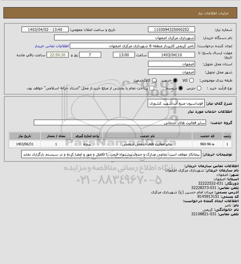 شرح کلی نیاز: فونداسیون منبع آب شهید کشوری