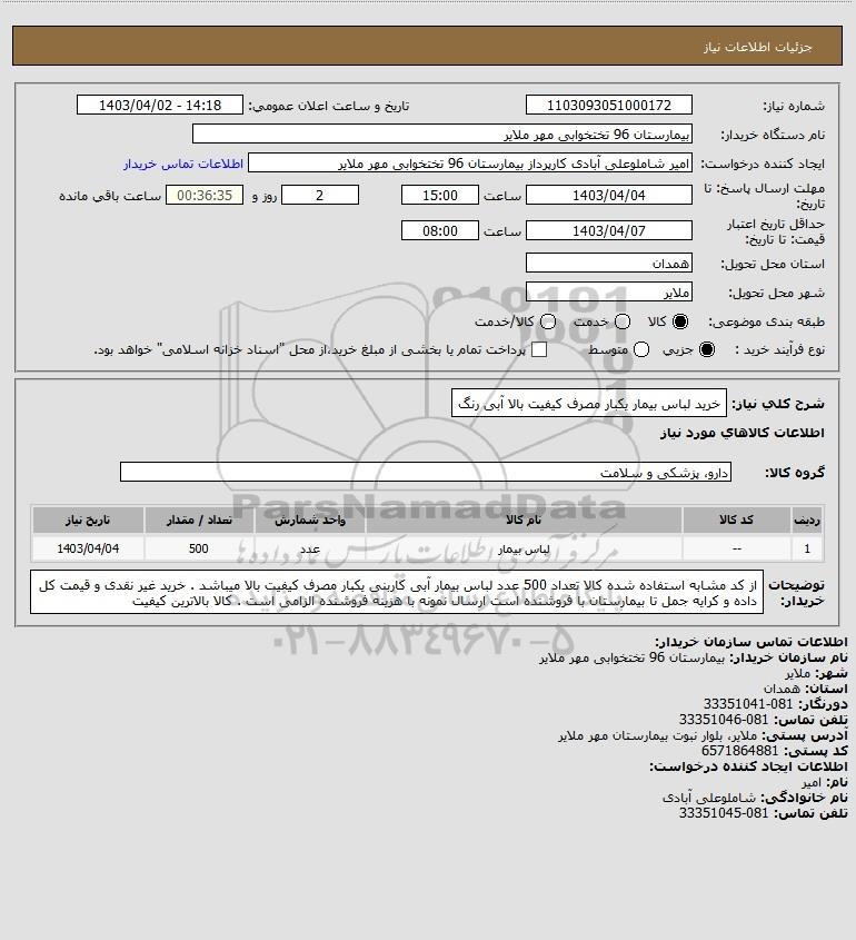 شرح کلی نیاز: خرید لباس بیمار یکبار مصرف کیفیت بالا آبی رنگ