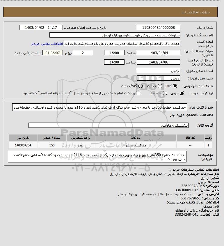نام دستگاه خریدار:سازمان مدیریت حمل ونقل بارومسافرشهرداری اردبیل