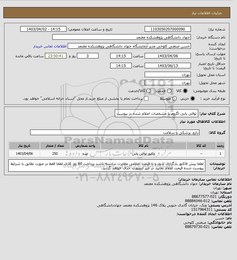 نام دستگاه خریدار:جهاد دانشگاهی پژوهشکده معتمد