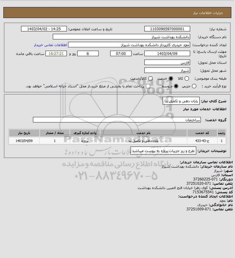 شرح کلی نیاز: پایان دهی و تکمیل بنا