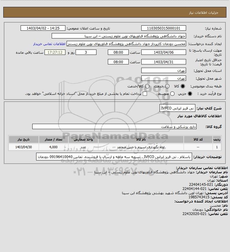 شرح کلی نیاز: نی فریز ایرانی IVFCO