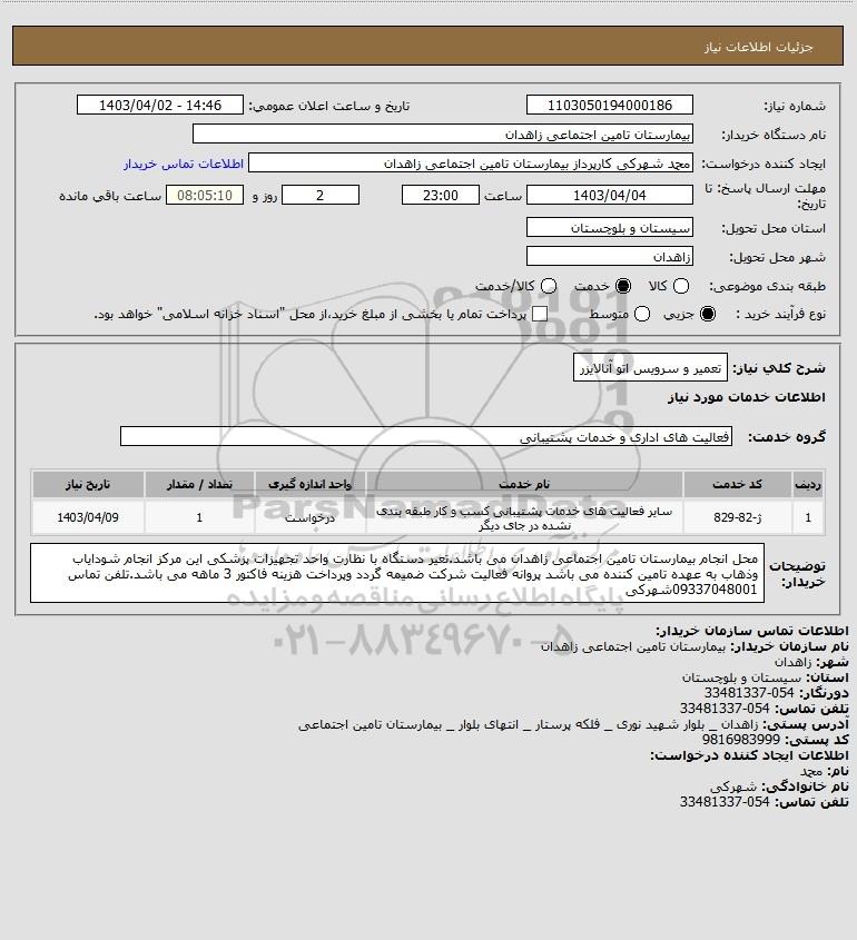 شرح کلی نیاز: تعمیر و سرویس اتو آنالایزر