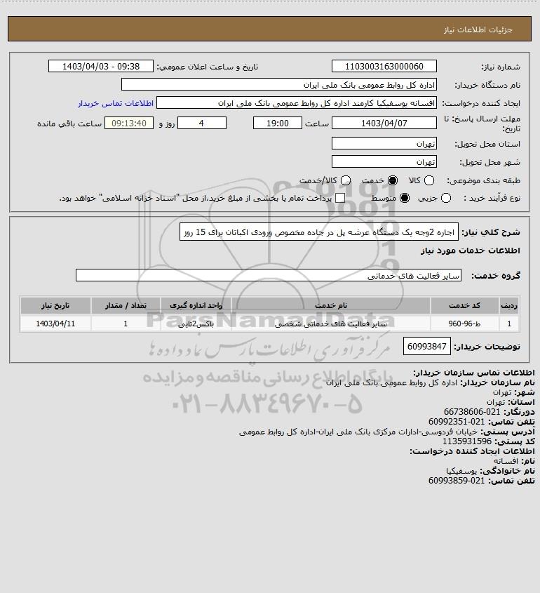 نام دستگاه خریدار:اداره کل روابط عمومی بانک ملی ایران