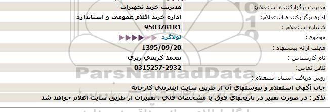 اداره برگزارکننده استعلام: اداره خرید اقلام عمومی و استاندارد