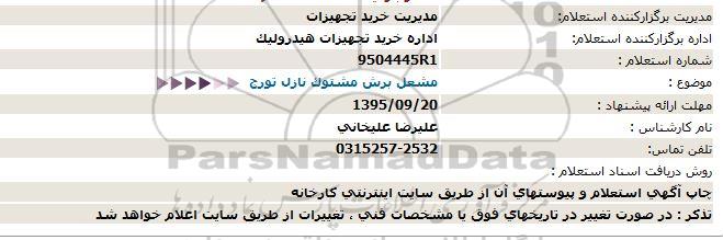 اداره برگزارکننده استعلام: اداره خرید تجهیزات هیدرولیک