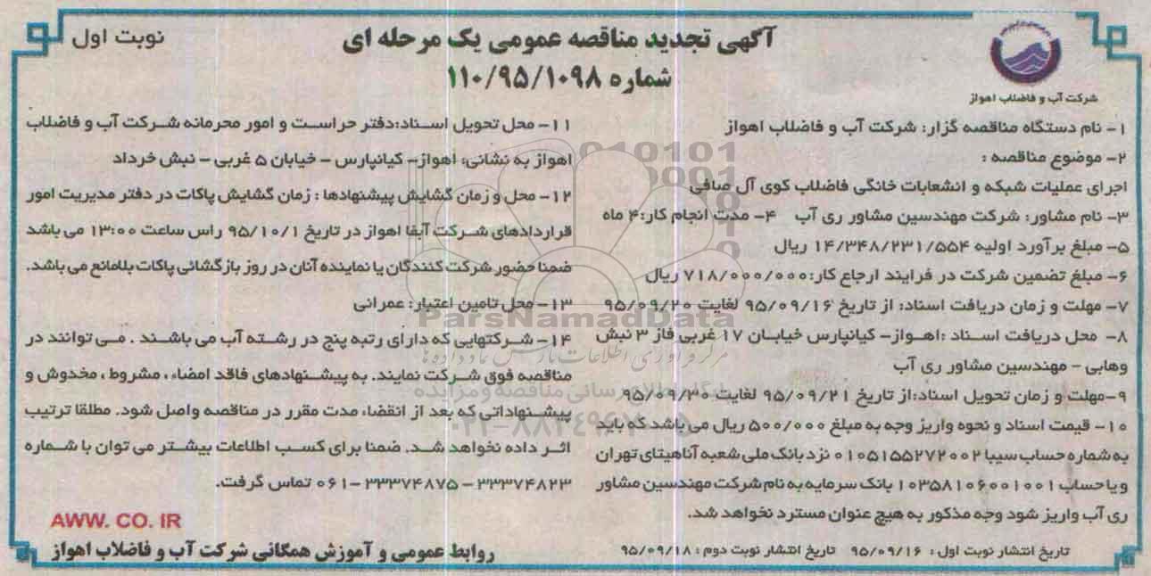 1- نام دستگاه مناقصه گزار: شرکت آب و فاضلاب اهواز
