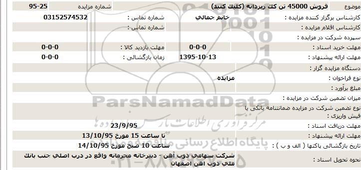 موضوع فروش 45000 تن كك ريزدانه (كليك كنيد) شماره مزایده 95-25