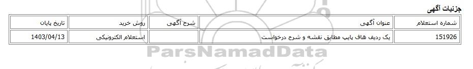 استعلام الکترونیکی، یک ردیف هاف پایپ مطابق نقشه و شرح درخواست, استعلام الکترونیکی، یک ردیف هاف پایپ مطابق نقشه و شرح درخواست