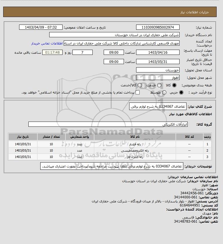 شرح کلی نیاز: تقاضای 0334067 به شرح لوازم برقی