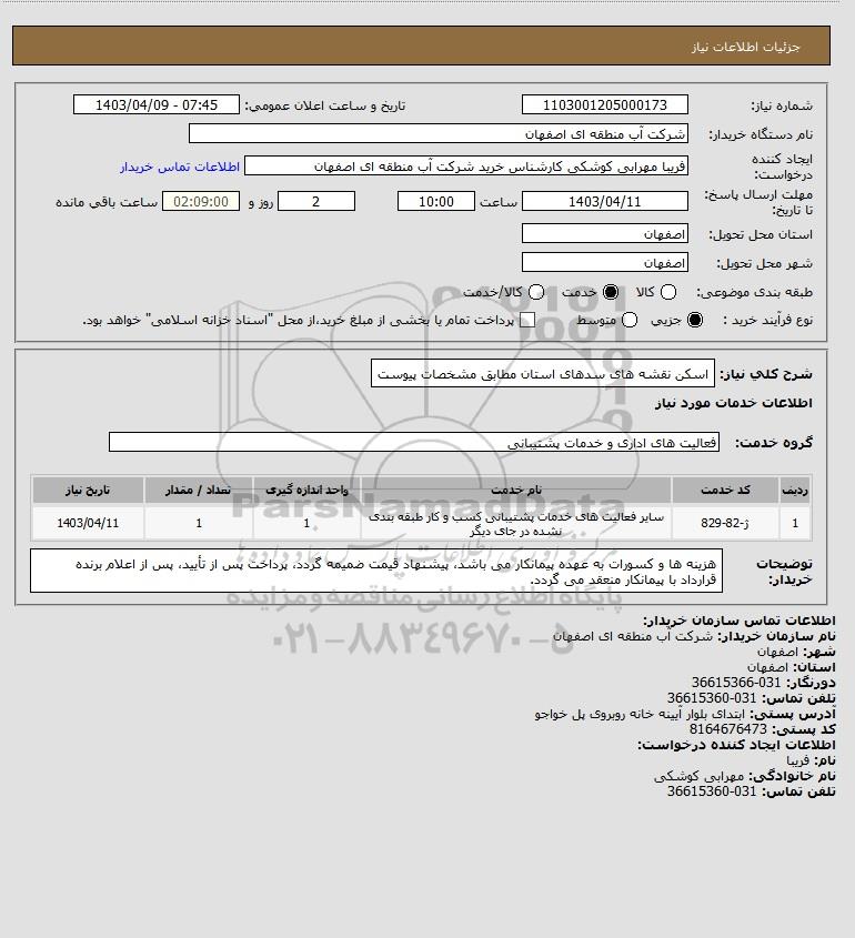 شرح کلی نیاز: اسکن نقشه های سدهای استان مطابق مشخصات پیوست