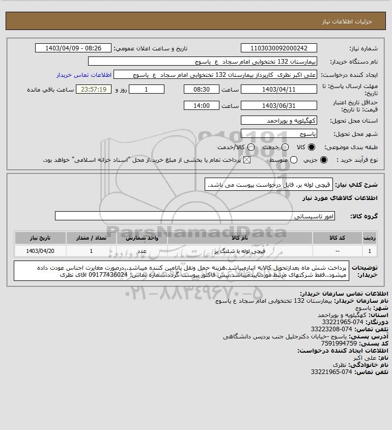 نام سازمان خریدار: بیمارستان 132 تختخوابی امام سجاد ع یاسوج
