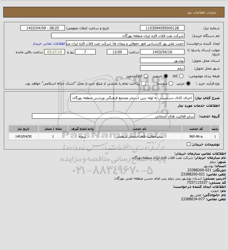 نام دستگاه خریدار:شرکت نفت فلات قاره ایران منطقه بهرگان