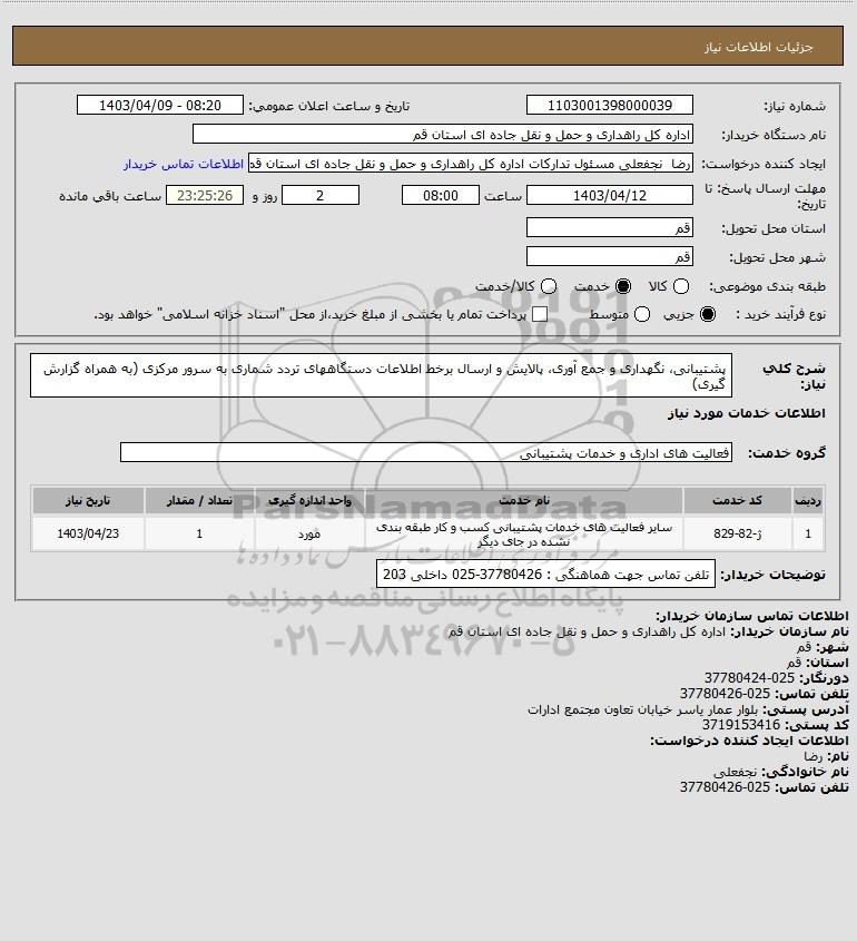 نام دستگاه خریدار:اداره کل راهداری و حمل و نقل جاده ای استان قم