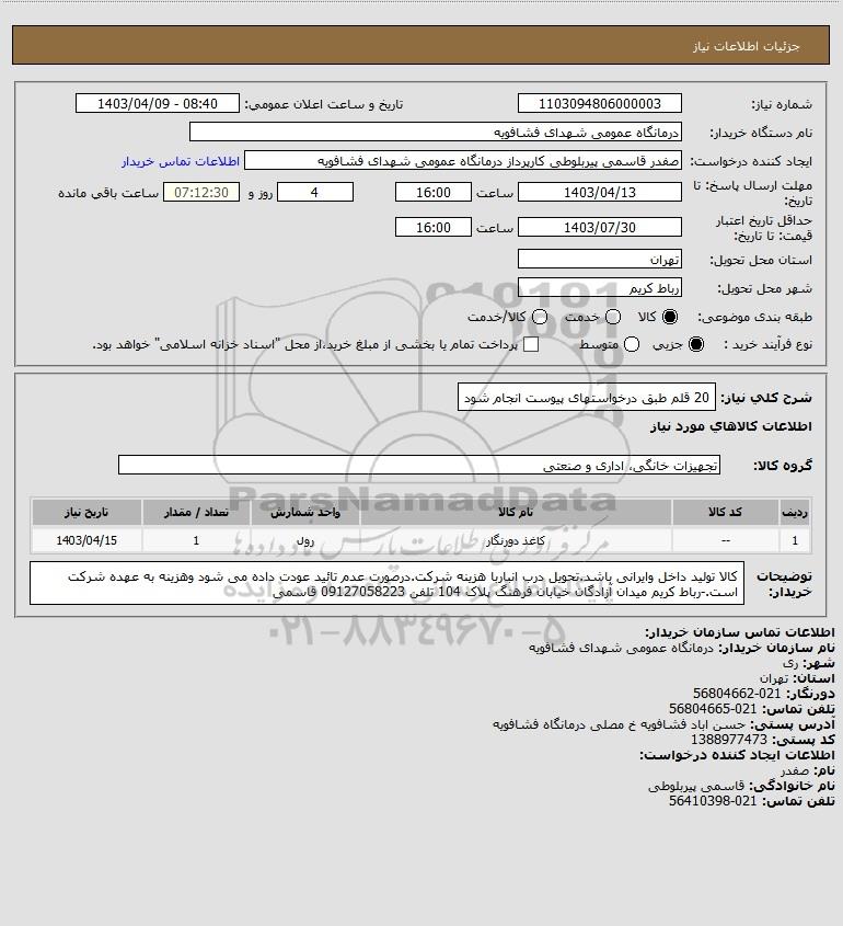 شرح کلی نیاز: 20 قلم طبق درخواستهای پیوست انجام شود