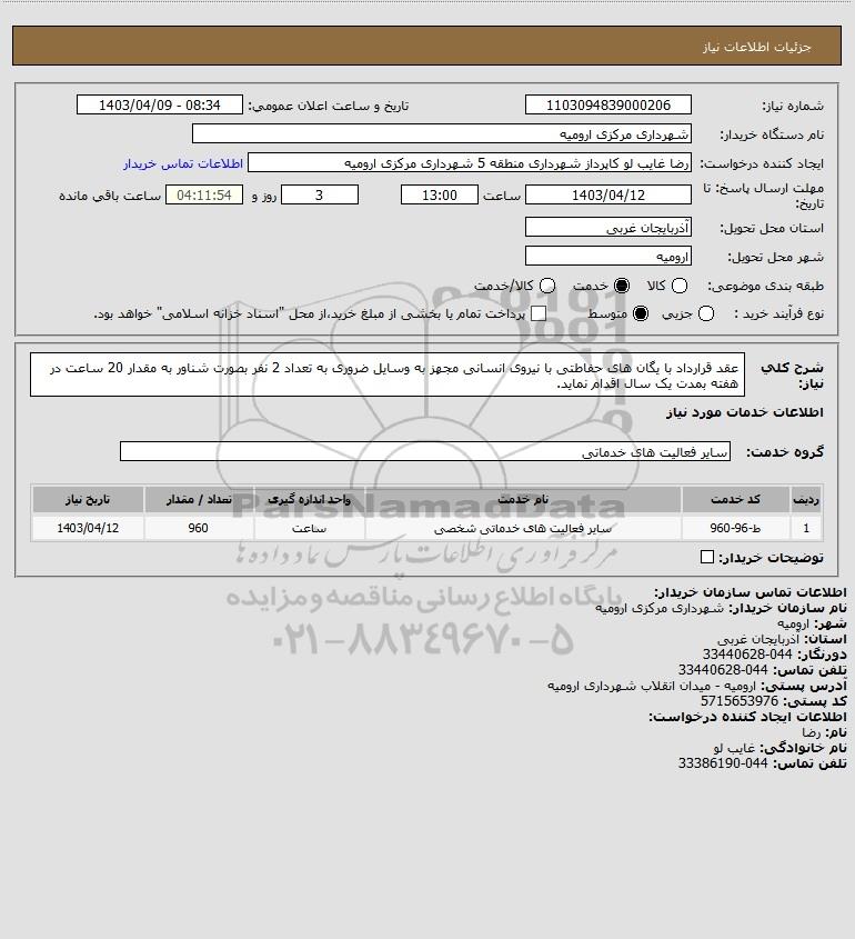 نام دستگاه خریدار:شهرداری مرکزی ارومیه