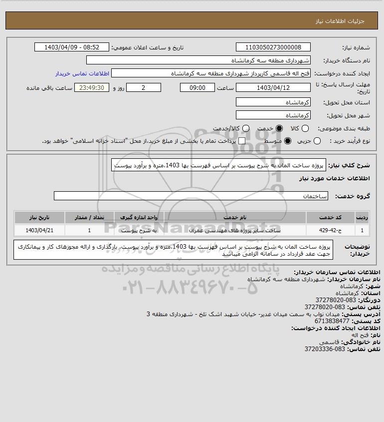 نام دستگاه خریدار:شهرداری منطقه سه کرمانشاه