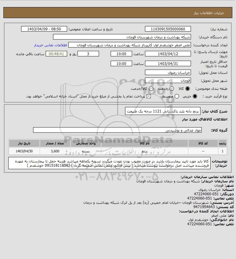 نام دستگاه خریدار:شبکه بهداشت و درمان شهرستان قوچان