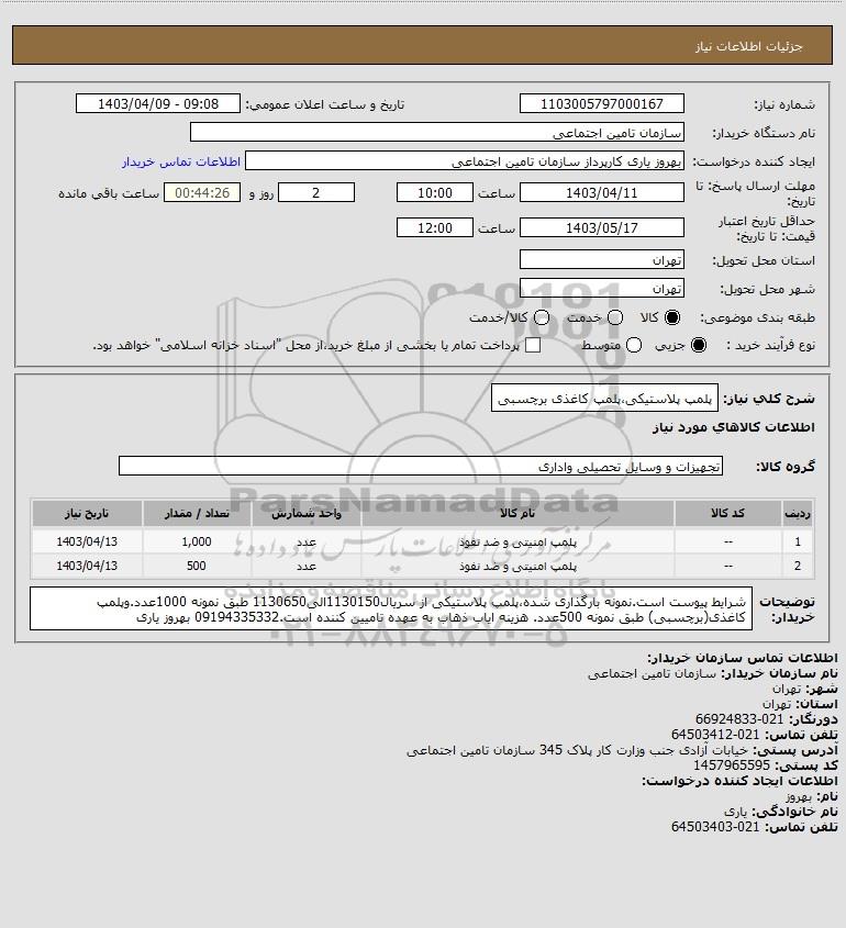 شرح کلی نیاز: پلمپ پلاستیکی،پلمپ کاغذی برچسبی