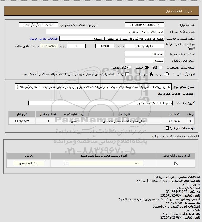 نام سازمان خریدار: شهرداری منطقه 1 سنندج