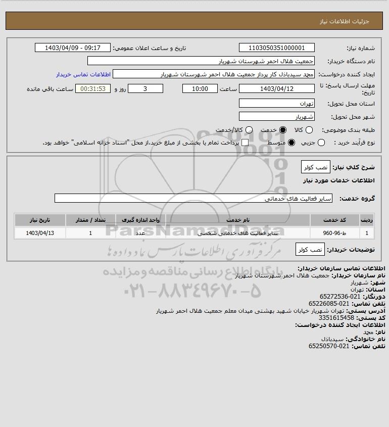 نام دستگاه خریدار:جمعیت هلال احمر شهرستان شهریار