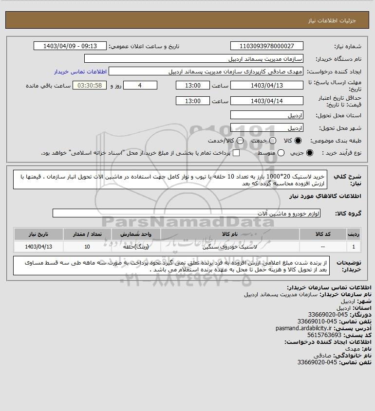 نام دستگاه خریدار:سازمان مدیریت پسماند اردبیل