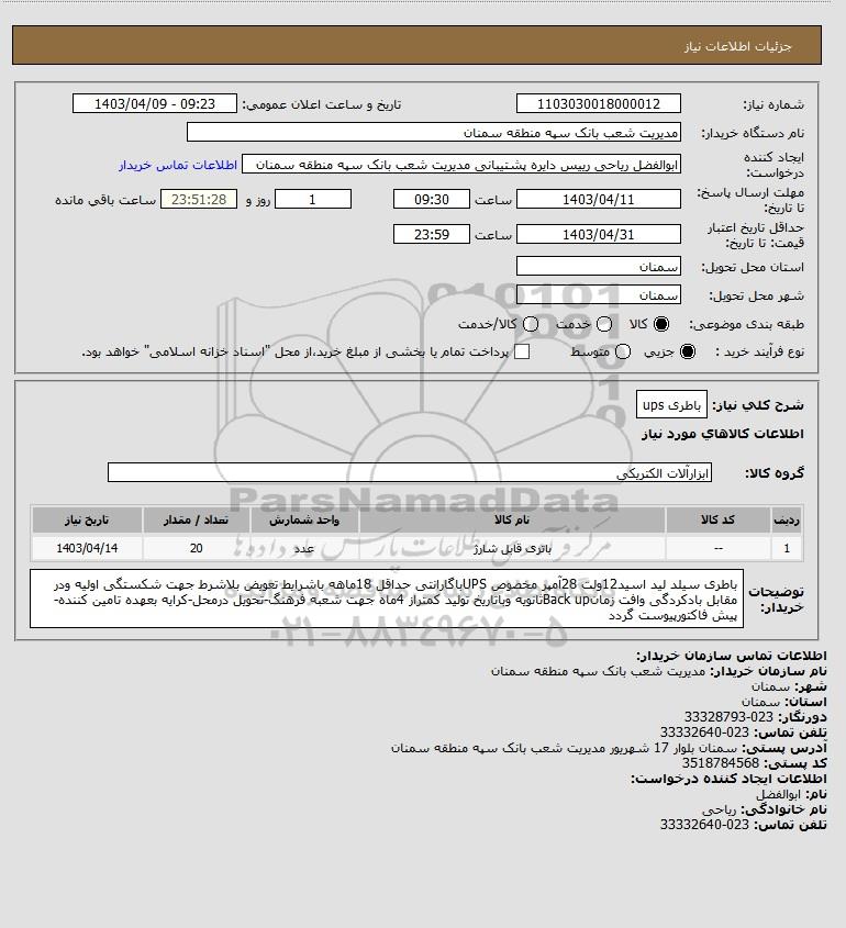شرح کلی نیاز: باطری ups