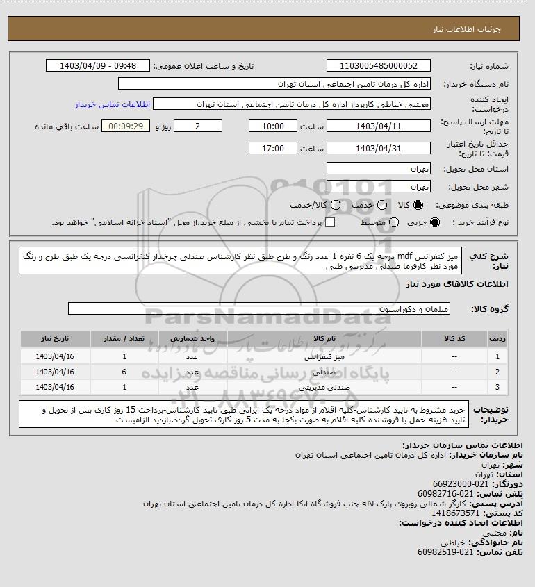 نام دستگاه خریدار:اداره کل درمان تامین اجتماعی استان تهران