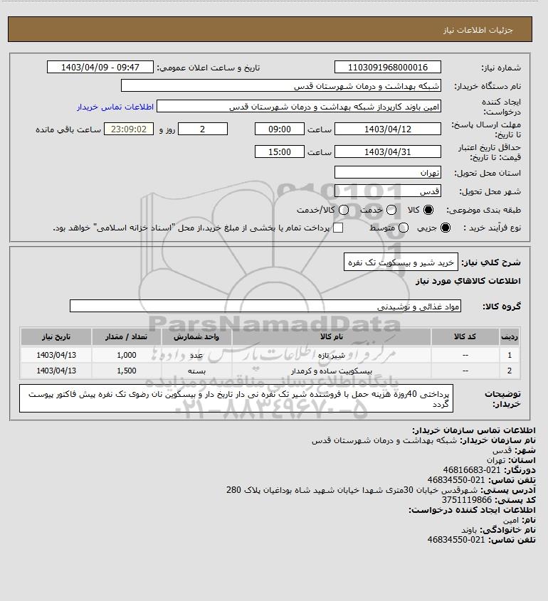 | 1 | -- | شیر تازه | عدد | 1,000 | 1403/04/13 |