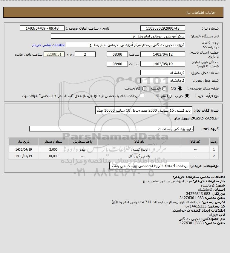 شرح کلی نیاز: باند کشی 15 سانتی 2000 عدد